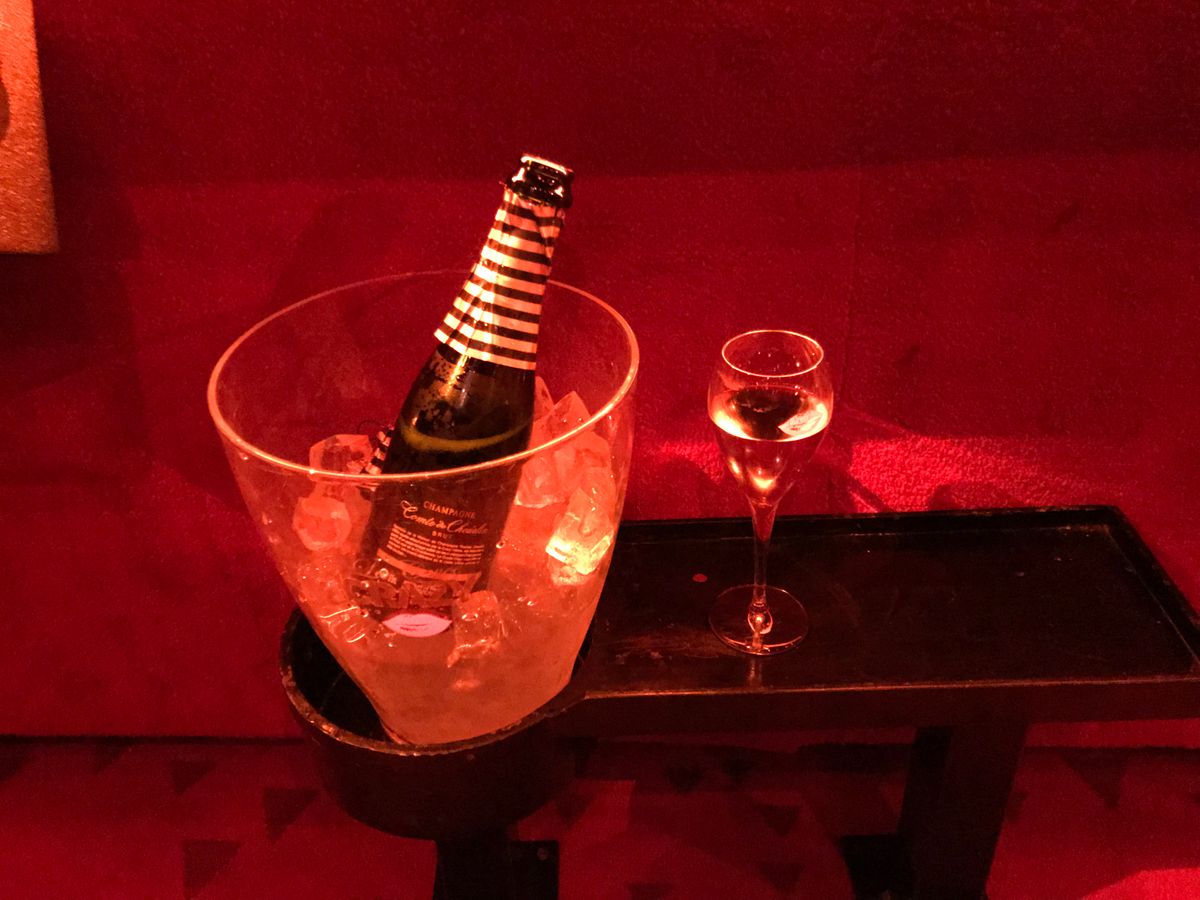 シャンパンも美味しく照明が凝っていてダンサーたちの身体に当たって衣装のように見える。