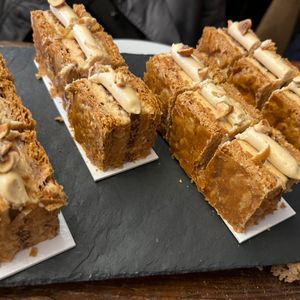 クロワッサンから、ケーキ、チーズ、、昼食のレストランで赤白ワインとサンドイッチ、、それからチョコレートの店、コロッケの店、フワフワシュークリームの店。
