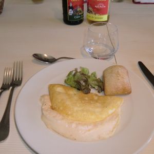 オムレツで有名ですが、昼食はホテルの食事でした。私はパリ市内のカフェで食べたオムレツのほうがおいしかったです(-"-) 好みの問題とは思いますが…。