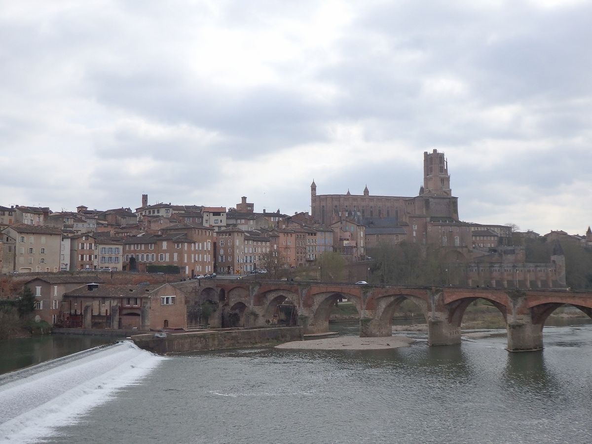 アルビは素晴らしい街でした。旧市街の対岸にあるメルキュール・ホテルから写真撮影。2本の赤い橋と堰で白く波だつ川と聳えたつサン・セシル大聖堂、こういう景色がみたかったという大パノラマ。そしてトゥールーズ・ロートレック美術館を見終えたところで奥様と息子さんに合流しました。そこからは奥様の案内で旧市街を散策。南西フランスには建築に適した石がなくほとんどの古い建物が煉瓦づくりでそのため赤い色になった、少し前までアルビの人たちは煉瓦造りを恥じその上に壁を塗って隠していたなど、面白いです。お陰で煉瓦がよく保存されたのかもしれません。サン・セシル大聖堂の比類ない重量感は煉瓦ゆえでしょうし、天井のフレスコ画の鮮やかな青も、構造的に大きな窓がつくれず暗いためによく残ったのかと思われました。家族ぐるみで歓迎していただき、特別な旅となりました。