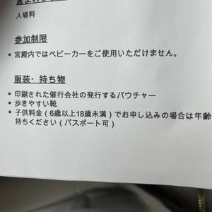 スタッフにから入場チケットの印刷物を受取りましたが、入場予定時間より遅いものでした。ダラダラとした待ち時間も長かったので、時間に余裕を持っての参加をお勧めします。