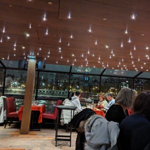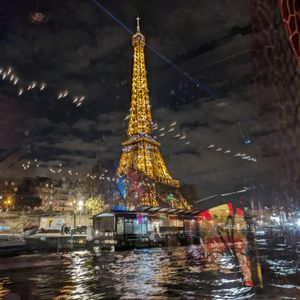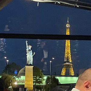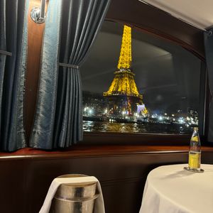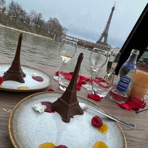 エッフェル塔の数分間のキラキラのライトアップが最高の位置で見られます。パリでの1番の思い出になること間違いないと思います。食事は期待してませんでしたが、ステーキは美味しかったです。ピアノ弾き語りの方のフランス語で歌う声が素敵ですし、アルコールが飲めない方用にジュースを出してくれたので、サービスも良かったです。船酔いは全くありません。