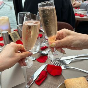 パリ旅行最後の夜の思い出にと、窓側席シャンパン付きで、家族3名で利用しました。シャンパンはグラス1杯かと思っていたらハーフボトル/人で、お料理も、スターター、メイン、デザートの3品でしたがどれも美味でした。景色も素晴らしく、食事の後は生ボーカルに合わせてダンスが始まり、狭いスペースではありましたが、皆楽しんでいました。