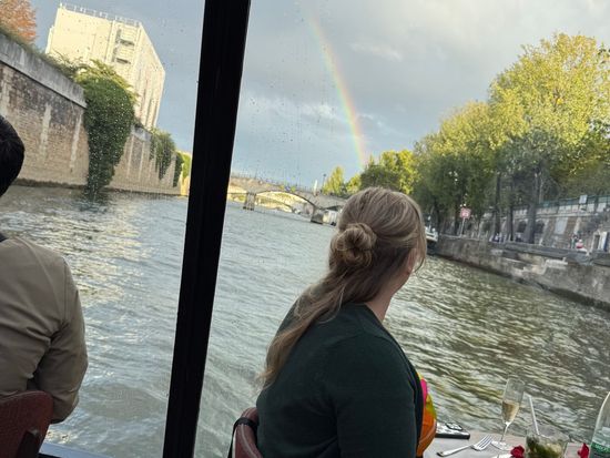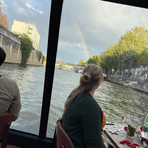 窓側席を予約していたので、終始パリの美しい景観を楽しむことができました。川から眺める景色は想像以上に美しく、感動的でした。主要な観光スポットをゆっくり往復してくれるので、シャッターチャンスもたくさんあります。