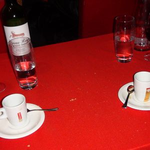 食前酒の時に写真を撮ってくれます。後で買う買わないは自由です。うちは記念にと買いましたが安くはないです(2枚で25ユーロだったか忘れてしまったけど)。御愛嬌で写真のエッフェル塔の横には後ろの方もちゃっかり写っちゃってましたけどね(笑)これも楽しい旅の思い出?!