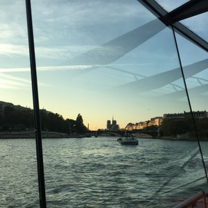 乗る時に先頭はどちらの方向かスタッフに確認して船上の前のほうに座りました。船上は満席でした。オルセー美術館やノートルダム寺院、エッフェル塔の船からの景色はとてもよかったです。が、10月27日でしたが、とても寒い。ショートコート、マフラー、手袋をしていましたが、寒くて寒くて。後半は寒さに耐えきれず船内に移動。船上にいた人達も次々と船内に移動していました。船内はとても暖かくてイヤホンガイドを聴きながらのんびりと過ごしました。