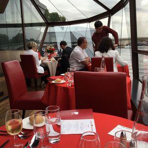 内側席、友人と二人で参加。夜8時でも明るく暑いパリで、クーラーの効いた船内でディナーを楽しめるクルーズは非常に快適でした。タバコ天国のフランスで禁煙なのもGood!