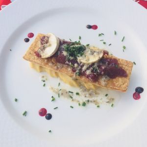シャンパンと前菜トマトのガレットとデザートが美味しいでした。