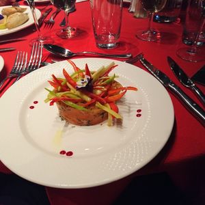 ラグジュアリーコースにて参加しました。スタンダードと迷ったのですが、食事だけではなく席も船首側の景観が良い席へ案内して頂けた気がします、周囲の方も同じ食事内容だったようなので。私達は岸側の一番前で素晴らしい景観でした。実はシャンパンで乾杯した時点で娘が気分悪くなりそこで翌日(25)に変更してもらい再乗船でした。この連続の参加で感じた事は変更が可能で、受付の女性たちが優しくとても良い印象でした。反面1日目のウエイターが、悪印象周りの食事が始まっても注文にも来ない、これが星減点の奴かと感じましたがこれが逆に注文もしてないしとキャンセル決断となりました。そして二日目の方はとても感じが良く、ソフトドリンクとワインの注文もOK、途中何度も景色の説明もしに来てくれ、こんなに差があるのかと感じました。もし1日目のような方だったらと、メニュー表に、丸印を付け遠慮なくどんどん注文しようと思ったのですがそのような心配はなく全てが笑顔で終了しました。食事はサーモンと、牛ヒレステーキ美味しかった、フォアグラはやや食べにくかった印象です。星4なのは接客にムラがあったからです
