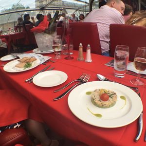 フランス旅行の最終日の夜に予約しました。夕暮れから夜にかけて、いろんな表情のセーヌ川を眺めながら素敵なディナーをとることができました。頼んだ料理と違うものが出てきましたが、違いますと伝えると丁寧に対応していただきました。