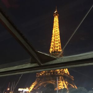 パリの夏は日没が9時なので、夜景を見るなら遅い出発のコースがオススメです。全面ガラス張りで景色がよく見えます。デッキに上がることもできます。風を切って、夏でも意外と寒いのでコートは必須かも。ライトアップはとってもキレイ!エッフェル塔のシャンパンフラッシュにも間に合い、写真をたくさん撮りました。食事にはワイン一本付きました。