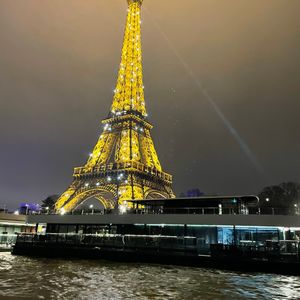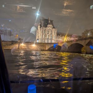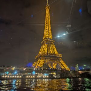 パリへは6度目でディナークルーズは4度目でした前の二回は他社一度はこの船でしたどちらの船も大きな変わりが在りませんでしたがホテルから徒歩で行ける会社にしていました何時もは普通の料理を食べながらのナイトクルーズの雰囲気を味わい良かったね~でしたが 今回イベント最大の00時丁度のエッフェル塔のシャンパンフラッシュが見れませんでした(-_-;) だったら他社にしたのにと二人でしょんぼりしていました、、、、、、