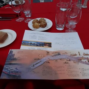 セーヌ川沿いのアトラクションを順番に巡ってくれますので、妻が初めてのパリ訪問で、とても気に入ってもらえました。少し早めにクルーズ船にたどり着くと船内の待合ホールで待機した後、順次テーブルに案内してくました。ランチメニューは品数は多くないですが、シャンパン、ワインがついて、お腹もしっかり、お味も悪くありません。スタッフの方がシャンソンを何曲か披露してくれ、パリ気分を盛り上げてくれました。室内での食事ですから雨の心配もありませんでした。