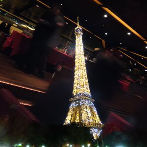 ピックアップが15分過ぎても来ず、催行会社に電話しますが、10分待ってもつながらず切れてしまいました。日本の携帯だから国際電話でかけているようなものなので、電話代どうしてくれるのか、と怒っていたら、銚子の良いイタリア人の男性が迎えにきました。それはさておき、エッフェル塔の食事は美味しかったです。ただ、迎えが遅刻したうえ、次に迎えに行った先の客がいなかったので事務所との連絡で時間を取ったため、食事時間が遅れ、エッフェル塔の上にも上りたかったので、コーヒーはあきらめました。その後、9時の1本早めのボート(8時40分)に知らずに乗り、イルミネーションが始まる前で失敗したかとおもいきや、河を降り変えず前にイルミネーションが始まり、また、10時少し前に岸に戻れたので、エッフェル塔のフラッシュも見ることができてラッキーでした。迎えのイタリア人は、早めに来て待っており、エッフェル塔が正面に見える最高の場所に移動してくれて、汚名挽回したので、チップもあげちゃいました。