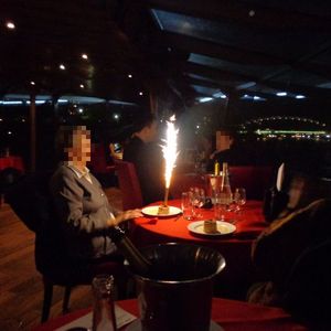 家族で利用しました。スマートカジュアルでの利用をお勧めします。息子の誕生月だったので、お祝いをお願いしたら、小さなろうそくをケーキに立ててくれて、バースデーソングを演奏してくれました。下船後はエッフェル塔まで歩いて夜景を堪能しました。