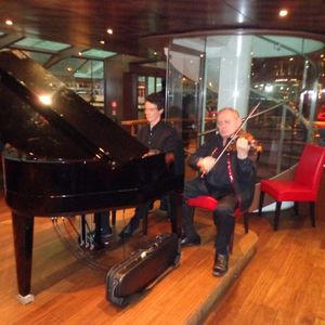 乗船すると、赤で統一された素敵な空間で、生演奏!