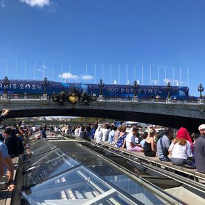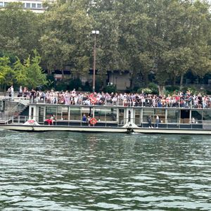 2024年7月初旬、オリンピック直前にパリに行きました。午前中はヴェルサイユ宮殿を観光し午後からセーヌ川遊覧クルーズに参加しました。バウチャーとチケットを交換して船乗り場の列に30~40分くらい並びました。午前中の疲れもありランチ後ということもあって、ゆったり船で座っていられるのは