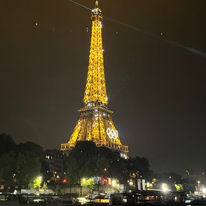 オリンピック仕様のエッフェル塔みながらセーヌ川んクルーズ美味しいご飯とワイン最高でした✌️お腹いっぱいで食べきれないほどご飯が出てきました