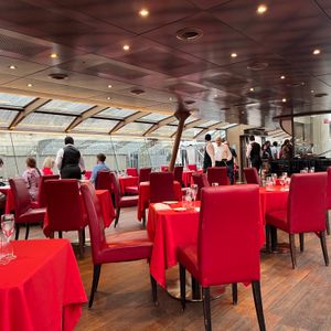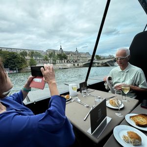 親切で丁寧なスタッフさん、生演奏のロマンチックな雰囲気、夜の輝くパリをゆったりと眺められます。本当に贅沢で素晴らしい時間になりました。日本人差別やスタッフの対応が悪い等の口コミを見て不安がありましたが、全くそんなことはありませんでした。日本語のメニューを貰えますし、私たちの拙い英語をちゃんと聞き取ってくれました。演奏の前で乗客の方が踊っていてそれも素敵でした。ぜひ一度は体験していただきたいです。時間は20:30からのものにしましたが、夕焼けからの夜景と両方見れてよかったです♪