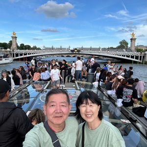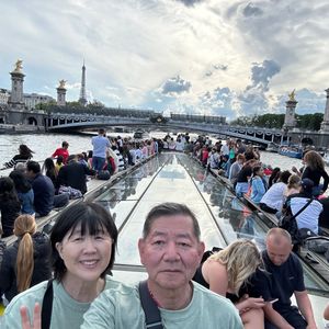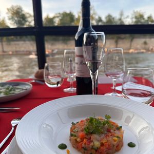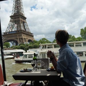 旦那さんとの新婚旅行でディナークルーズを予約しました。席は窓側席の最前列でとても眺めが良かったです。ディナークルーズですが、6月のパリは日没が遅いので昼間のように明るかったですが、エッフェル塔などを眺めながらの食事は最高でした。店員のお兄さんの接客もとてもよく、心地良い時間を過ごせました。お料理もどれも美味しかったです。