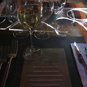 中に入ってコートを預けたあと、メニュー(仏語、英語。内容は申し込み詳細に書いてある通り)を渡されますので、その中から夫と私で別々のメニューを選びました。