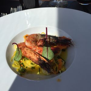 海老のプランチャー焼きの下に、まるい型のサフランリゾットが敷いてあったのですが、これが今まで食べたことがないほどおいしくありませんでした。