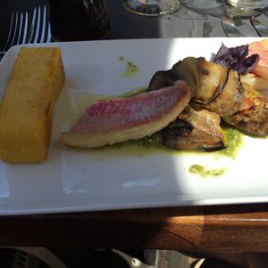 メインは鴨のローストと白身魚を一つづつチョイス。味付けが良かった。