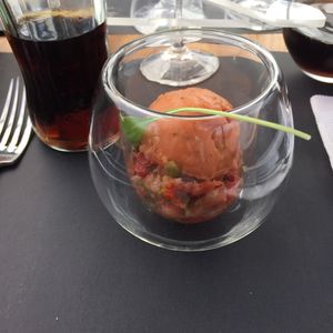 メトロを降りてすぐの立地で、ステンドグラスの綺麗なちっちゃなrestaurantでした。私はお魚、娘はお肉のmainを選びましたが、どちらもとても美味しく頂きました。前菜に選んだoysterがパリっぽくて大満足でした!