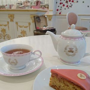 マリーアントワネットのケーキセットを頼んで、ケーキと紅茶をいただきました。ケーキもピンクでマリーアントワネットらしくて、紅茶もとても美味しかったです!