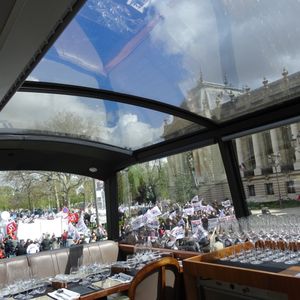 ランチで利用しました。車体が黒くてかっこよく、乗車中は何度も外の人から指をさされました。食事は、まあまあでした。主要な観光スポットではしっかり停車してくれるので、写真がたくさん撮れました。乗り場は、最初人がいなくて心配でしたが、凱旋門を左に見る角で待てば大丈夫です。