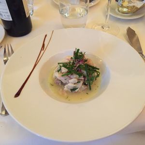 料理はまずまずといったところでしょうか。フレンチの経験は多くないですが、どれも美味しかったです。メインのお肉が少し硬かったですが、デザートまで楽しめました。飲み物付きで予約はしておらず、当日に飲んだ分だけ現金で支払いました。