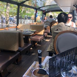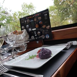 ランチツアー飲み物付きを申込み。空いている日だったのか4組ほど。最前列のパノラマビューでラッキーでした。食器もグラスもサービングもレストランと全く変わりなく、料理レベルにも満足、ワイン3種を飲みながらレストランの市内観光をゆったり豪華な気分を味わえ、決して高くない充実のひと時を味わうことができました。