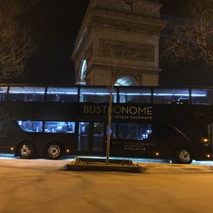 凱旋門の横あたりからスタートするドリンク付きでディナーを食べながら市内観光します。ガイドレシーバーがあるので、ポイントポイントで確認しながらコース料理が出てきます。料理自体はそこそこですが、おおよそ2時間30分くらいの時間をかけて車窓からイルミネーションを眺めて楽しめます。グラスは全部リーデルでした、途中でワインのお代わりを勧められましたので雰囲気的に無料かと思ったら有料だったのが笑えました。エッフェル塔は霧で半分隠れてましたがフラッシュイルミネーションが見れて満足です。初パリの初日として夜観光にお勧めです。