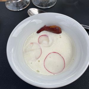 ストライキの影響で道が混んでいて予約時間に遅れそうだったので、電話で連絡した。レストランについたら、可愛い受付の方が連絡してくれてありがとうと迎えてくれた。(連絡なく遅れてくる方が多いと笑っていたが。)ウエーターにレストランの歴史を尋ねたら、「ちょっと待って」と言って日本語でレストランの歴史を説明した資料を持ってきてくれた。とにかくウエーターがテキパキ動く。お盆にワインの瓶や、料理を乗せて肩よりも高い位置に上げて早足で歩く姿が印象的でした。ベルサイユ宮殿かと錯覚するような豪華な内装で食事も楽しめました。(3人なのにワインを2本出してくれました。)