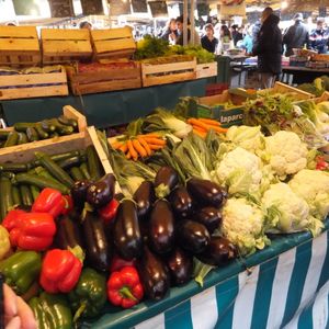 ベルサイユ宮殿内を,朝一番から見学できたので,それほど混雑も気になりませんでした.鏡の間のあたりで後からどんどん人が増えたので,ちょっと他より早く入館できたのだと思います.さすがにこの時間内では庭園は少し見ただけでしたが,時間が足りないという印象ではありませんでした.宮殿内の売店で,バラのジャムとラデュレのマカロンを買いましたが,その後で行ったマルシェで,よいお土産がたくさんありました.塩キャラメルのソース(小さい瓶,1つ2ユーロ)や,フォアグラのパテの缶詰も買いました(現地価格?他よりずっと安かったです.).果物やお昼に食べるお惣菜も買うことができて大満足でした.このマルシェ寄り道は意外と点数が高いと思いました.
