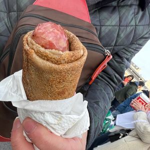マルシェには宮殿から5分ほど歩いて向かいました。とても賑わっていました。ガレットとても美味しかったです!こちらも30分と時間が短いです。