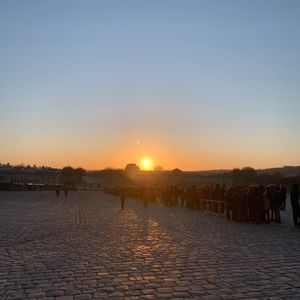 ヴェルサイユ宮殿朝陽が昇り金色に輝いて素敵でした。