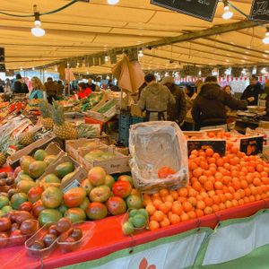 宮殿での見学後ちょうどお腹が空く頃なので、マルシェへも行き美味しいカルツォーネを食べ、新鮮な野菜や果物を買えました。