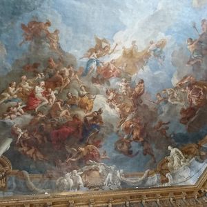 ヴェルサイユ宮殿がどういった経緯で建てられたか、奥様との関係、ルイ14世の9歳のトラウマ、ルイ13世が敵視したニコラフーケの存在、2Fに上がる階段が低いのはドレスを踏まないように設計されている事、ルイ13世は毎朝、決まった時間に王専用の礼拝堂で祈り、10時には朝食と全ての行動を人々に見られながら暮らしていた事などをうかがいながら、飲み物専用の部屋(芸術品のお宝の部屋)、ケーキ専用の部屋(ヴィーナスの間)、ビリヤード専用の部屋(13世がビリヤードが得意)、マルスの間、戦争に勝った部屋、メルキュールの間、アポロンの間へと進みました その間、ルイ13世がファッションリーダーだった話、バレエが好きで自らも上手だった話などさまざまなヴェルサイユ宮殿にまつわる話を聞いてとても面白く、当時の様子を知ることができ、世界史の授業では教わることもない深い生活史を聞きながらの見学にこのツアーに参加して本当に良かったと思いました。その後、見学は解散して、自由時間が1時間程あったので、建物の左側から出て、830㌶もある広大なフランス式庭園を満喫してバスへ戻りました。
