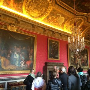 出発は定刻8:00より早い7:55で、ヴェルサイユ宮殿に8:30過ぎに到着。駐車場には、すでに大型バスが4台で、入場門には行列ができていました。ガイドなしプランの方は、すぐ列に並び、ガイドありプランは、開門9:00まで、無料で入場できる庭園をガイドしてもらいました。 9:00からは、入場予約で並ばずに宮殿に入れ、解説を聞きながら、中を案内してもらいました。歴史的な背景や見所など、やはりガイドありとなしでは、満足度は全然違うような気がします。ガイドさんとの会話(ヴェルサイユのことはもちろんですが、パリでの生活のことなども聞いたらアレコレと話してくれました。)も、とても楽しかったです。