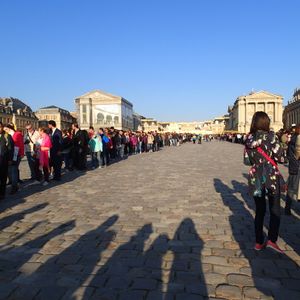 午前の半日観光ガイドなしツアーを申し込みました。ガイド付きツアー以外は優先入場等は無く、早い者順で並ぶ事になります。自分達は10月の閑散期でしたので、観光バスがまだ、4~5台しか到着しておらず、200人位しか並んでなかったと思います。(かなり、少ない方だとガイドさんが言ってました。)9:00から入場開始になり、15分程で通過、セキュリティーチェックの後、トイレを済ませて、音声ガイドを貰って見学。宮殿内は流すように見学し、鏡の回廊、ナポレオンの戴冠式の絵、を見て、お土産を物色し、庭へ、疲れていたので、奥の方までは行かずに写真撮影を済ませて、それでも、ちょっとのんびりした後にバスへ戻って、丁度1時間半位です。宮殿内も庭園もじっくりと見学したい人は、半日観光は止めた方が良いかと。ポイントを絞って見学したい人向きです。ちなみに、自分はオーディオガイド借りましたが、最初の注意事項しか聞いてません。私の相方は要所、要所で聞いてたみたいです。自分達的には、丁度良いツアー内容でした。