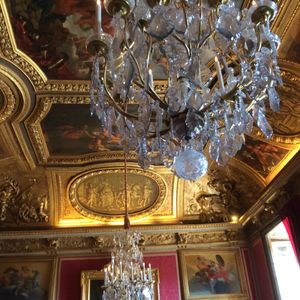 修理中のベルサイユ残念。サンクト=ペテルブルクの冬の宮殿を見た僕達には煤けた天井 汚れたシャンゼリア 割れた床石などガッカリすること沢山。マルシュ散策は楽しかったんです。