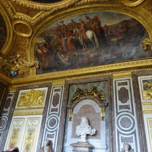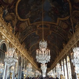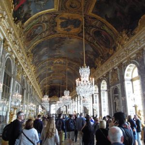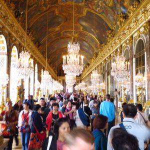 土曜日のベルサイユ半日ツアー午前中にもかかわらず、宮殿前は長蛇の列、そこをするっとすり抜け宮殿内に、時間の限られた個人旅行では、少し高いけど、お金で時間を買うこのようなツアーは不可欠だと思います。ガイドさんはうまく誘導してくれて、どこの部屋も最前列で見ることが出来ました。鏡の部屋でガイドさんの取ってくれた写真も最高の一枚でした。