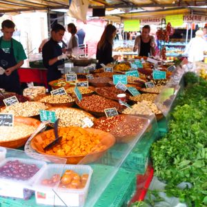 日曜日のパリはほとんどの店が休みで買い物があまり出来ないとのことを聞いたので、このツアーを申し込みました。日曜日は車が少なくベルサイュまで道が混まずに行けるので意外と良いかもしれません。それでもベルサイュは開園の30分前でもバスが多数来ており、200名以上並んでいましたが、9時に開いてから15分で入れましたので日曜日は狙い目かもしれません。ただし、宮殿の内部は大混雑、特に中国人は隙間押し込んでくるので見学はゆっくりできません。鏡の間も混雑なので人が映り込まないようにシャンデリアを写すのがそれらしく写ります。ただし別料金ですが庭はやったりしています。しかし、このオブションはナット言っても日曜日のマルシェかもしれません。マルシェで売っているクロワッサンは冷えても美味しく、他のパンも美味しいものがありました。最と時間があれば買い物が十分出来るので良いかと思います。日曜日はベルサイュ宮殿よりマルシェをお薦めします。