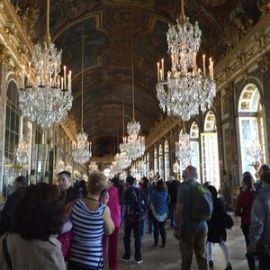 5月3日午前の部に1人で参加しました。30人程の参加者で、ガイドさんは2名(フランス人と日本人)でした。天気はあいにくの雨でしたが、宮殿内に入ってしまえば当然天気は問題ありません。パリ市内からの道中も、ガイドさんが各名所の説明をしてくれて、前日に訪れた場所の理解を深めることができました。宮殿内は歩くのも大変なくらいの人でしたが、ガイドさんの生の説明があったおかげで、混雑もそれほど気になりませんでした。有名な鏡の回廊は圧巻です。長い傘は宮殿内に持ち込みできないので、預けるのが面倒な場合は折りたたみ傘をお勧めします。庭園をゆっくり見学したい場合は、半日では時間がありませんが、宮殿内の見学と庭園の雰囲気でOKであれば半日で十分だと思いました。