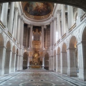 旅行最終日。集合場所のラファイエットはわかりやすく、案内の方も来ていて安心できます。ガイドの方の説明もよかったです、おがけでスリにも合わず、色々な事を知ることができて、満足です。ただ、最初に庭を見学、この時期は無料のはずがなぜか有料に・ガイド付きは入場料込みなので入れます。9時到着、肌寒いので45分のところ30分に切り上げ、でも十分でした。団体入口へ10時入場予約、3名なので交渉して早く入れてもらいますとガイドさん。しかし無理でした、沢山の団体客がきます、融通がききません、私達はその場で立ったまま30分待たされました。当然ガイド無しの一般から入った皆様が先に入場されました。高い料金を払った意味がありません。それならば9時入場予約にして、庭園のチケットを渡し最後に自由に見学させるべきではなかったでしょうか。そのせいでお土産、トイレ時間が10分、ちらっと見ましたが、レジも混んでいます、ガイド無の方々に待っていただいています、結局何も買えませんでした、一生に一度かもしれない旅行です、それなりの料金も支払っています、人には薦められません。またフラゴナール香水美術館、ものすごく早口の説明でよくわかりません、この時間をヴェルサイユに充ててほしかったです。娘が買った練香水、香りが選べたのは良かったですが帰りのANA機内販売方が安かったですよ。