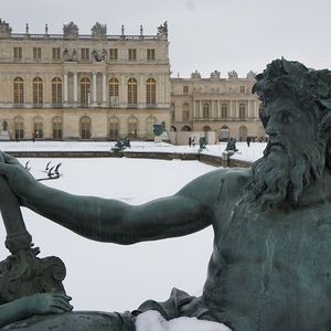 40年ぶりの大雪で、ツアー中止になるかもと、心配していましたが、決行になり良かったです。雪景色のベルサイユ宮殿。