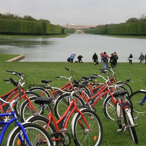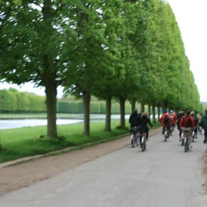 予定時間に事務所を出発スタッフが「アメイジング」日本なら当たり前なのですが。列車にてベルサイユに、ここで自転車に、まず市場にてショッピング総菜屋さんにてテリーヌ・生ハム・フロマージュを仕入れ。(本当の市場なのでサンドイッチなどはありません)出発、裏の方?農場のほうから敷地に入りいろいろ歴史を説明してくれるのだがほとんど理解できず・・・日本人は私一人。大運河のちょうど宮殿の正面にてランチタイム徒歩入場の人は当然ここまで来る人はいないのでとてもベルサイユ宮殿とは思えない静かさ。昼食後宮殿に向かうが少々上り坂がありますがほとんど快適なサイクリング。1回外に出て正面より自転車を置いての入場、宮殿内はチケットを渡され集合時間まで自由行動。最後は駅近くで自転車を返却、パリまでのチケットをもらって現地解散。17時頃なのですぐに帰る人、残る人いろいろです。新緑のきれいな道をサイクリングするだけでも気持ちがいいものでした。