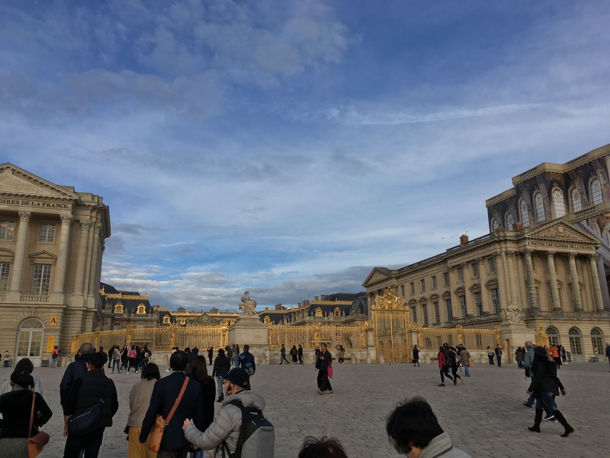 午前に到着時には霧に包まれたベルサイユ宮殿でしたが,到着後に開園前の列が多少できていたものの待っている間に記念撮影ができ,宮殿内もオーディオガイドでゆっくりと観光できました.