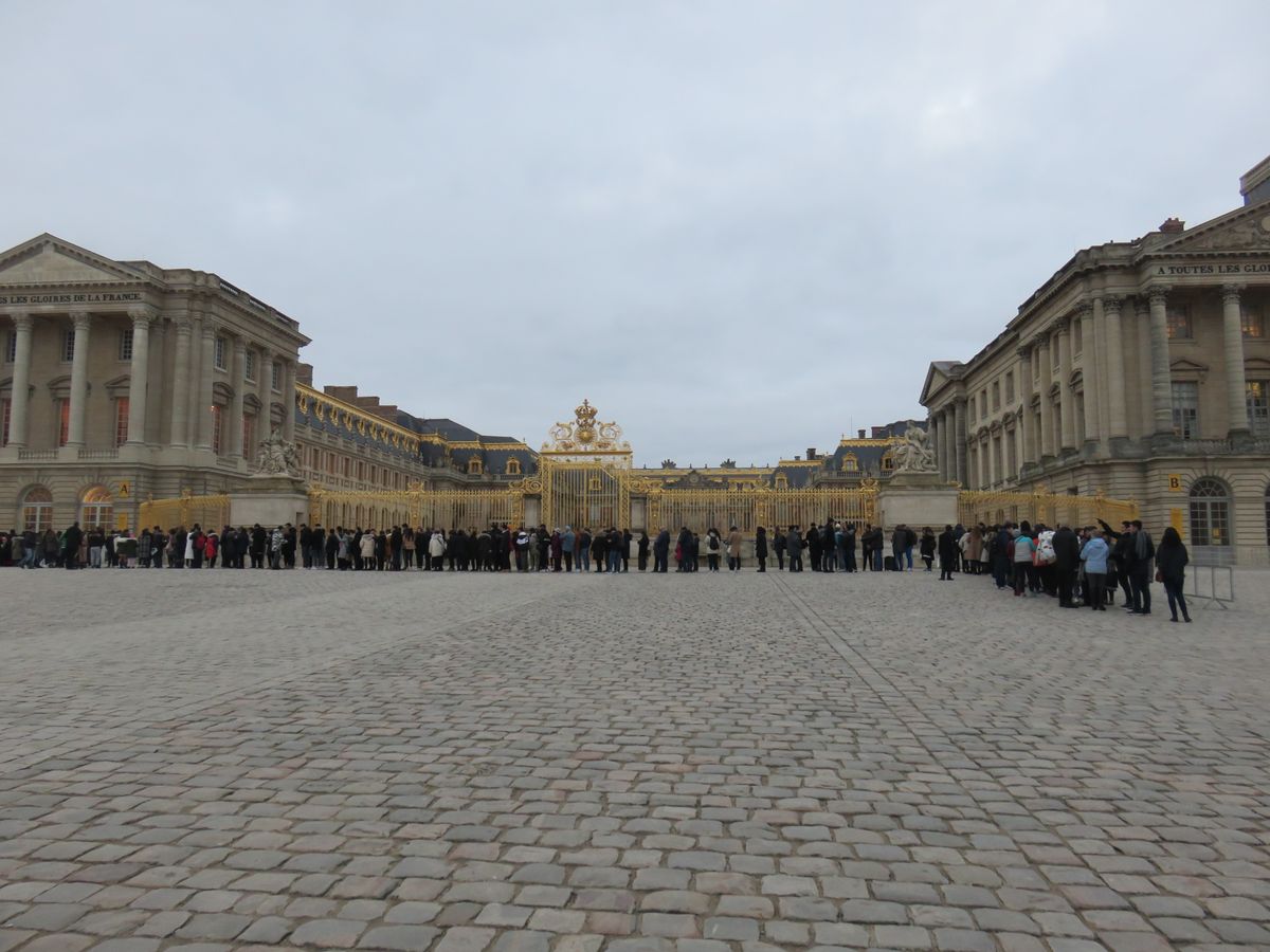 9:00すぎにベルサイユ宮殿に着くと、チケットを買う人と個人で予約済の人との長蛇の列が出来ていました。こちらのベルトラのチケットは団体チケット扱いなので、ガイドさんの指示に従ってスムーズに入場することが出来ました。